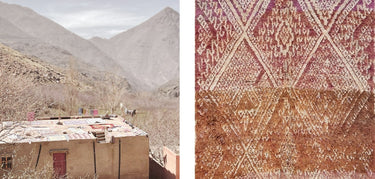 Les tapis Beni M’Guild sont profondément enracinés dans les hivers froids du Moyen Atlas. Traditionnellement réversibles, ils arborent des teintes sombres et intenses, comme le bleu profond ou le bordeaux et des motifs losanges marqués. Robustes, durables, pleins d’âme, ils réchauffent à la fois les maisons et les cœurs.