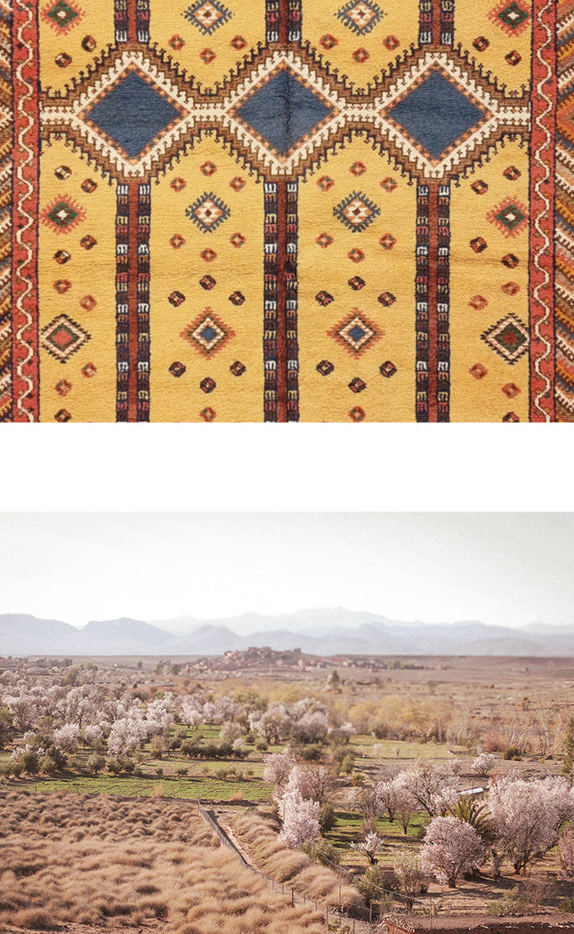 Taznakht est une merveille vibrante des montagnes du Haut Atlas. Réputés pour leurs motifs géométriques complexes et leurs teintures naturelles riches, particulièrement les jaunes safran et les rouges profonds. ces tapis sont tissés avec précision par les femmes de la tribu Aït Ouaouzguite. Leur héritage se lit dans chaque nœud, mêlant symbolisme amazigh ancestral et créativité audacieuse.