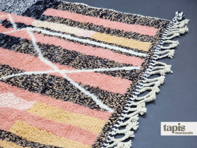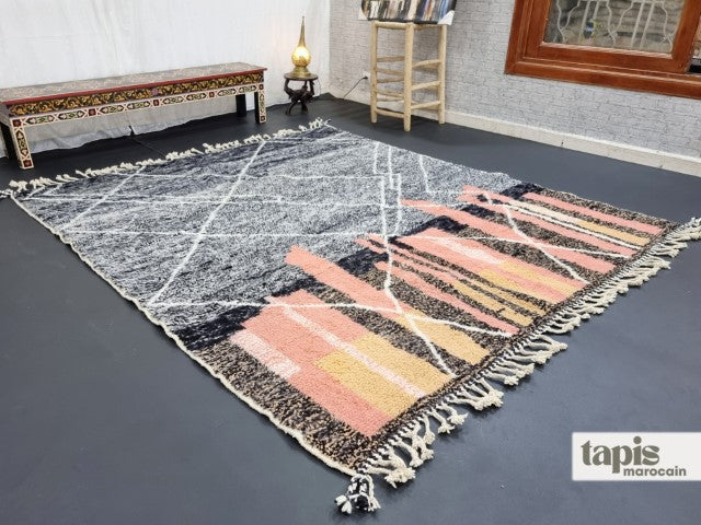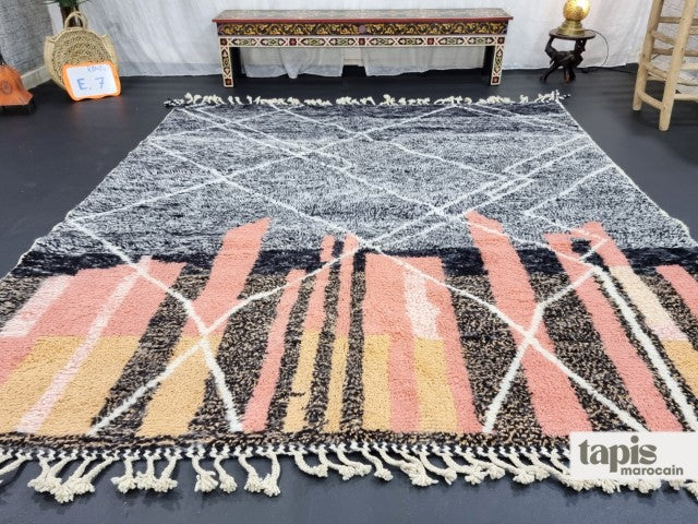 Le tapis berbère Beni Ouarain en laine douce marie authenticité et élégance moderne. Tissé à la main dans l’Atlas marocain, il séduit par ses motifs intemporels et son confort chaleureux. Véritable pièce d’artisanat, chaque tapis marocain est unique, fruit d’un savoir-faire ancestral. Avec sa texture raffinée et son style polyvalent, il apportera caractère et douceur à votre salon, chambre ou bureau.