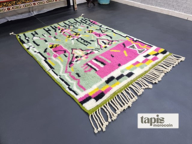 Ce tapis berbère Beni Ouarain en laine douce marie authenticité et élégance moderne. Tissé à la main dans l’Atlas marocain, il séduit par ses motifs intemporels et son confort chaleureux. Véritable pièce d’artisanat, chaque tapis marocain est unique, fruit d’un savoir-faire ancestral. Avec sa texture raffinée et son style polyvalent, il apportera caractère et douceur à votre salon, chambre ou bureau.