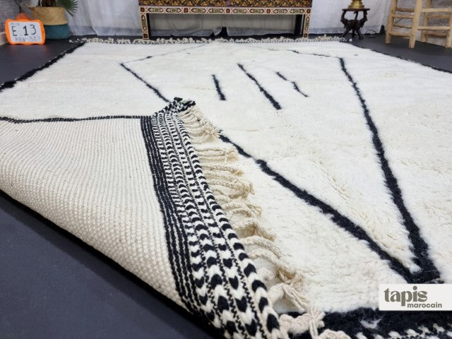 Ce tapis berbère Beni Ouarain en laine douce marie authenticité et élégance moderne. Tissé à la main dans l’Atlas marocain, il séduit par ses motifs intemporels et son confort chaleureux. Véritable pièce d’artisanat, chaque tapis marocain est unique, fruit d’un savoir-faire ancestral. Avec sa texture raffinée et son style polyvalent, il apportera caractère et douceur à votre salon, chambre ou bureau.
