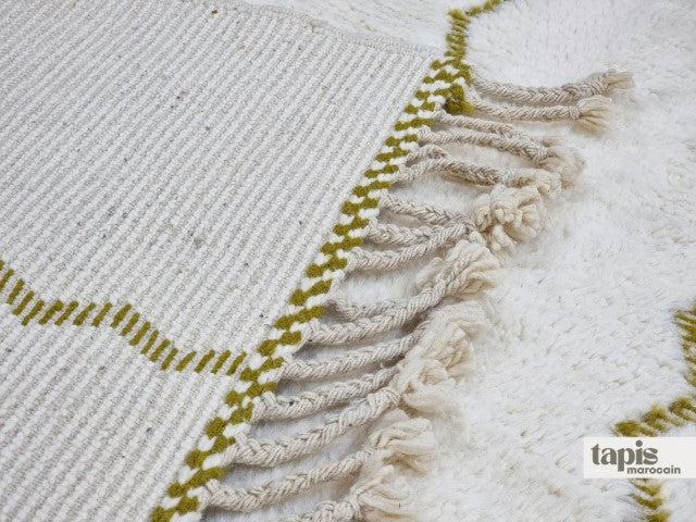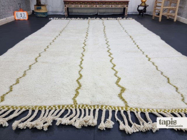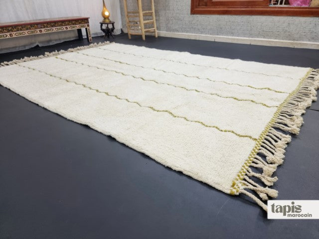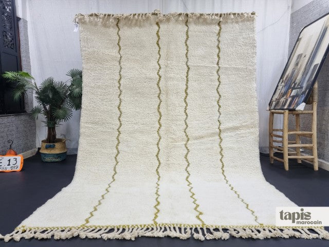 Ce tapis berbère Beni Ouarain en laine douce marie authenticité et élégance moderne. Tissé à la main dans l’Atlas marocain, il séduit par ses motifs intemporels et son confort chaleureux. Véritable pièce d’artisanat, chaque tapis marocain est unique, fruit d’un savoir-faire ancestral. Avec sa texture raffinée et son style polyvalent, il apportera caractère et douceur à votre salon, chambre ou bureau.