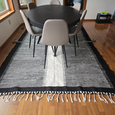 The rug that was made for us is a work of art! The seller worked with us to create the exact rug we hoped for. It looks beautiful in our space! (This is the third rug we have purchased from this seller and we are always super happy with the product!) Thanks!