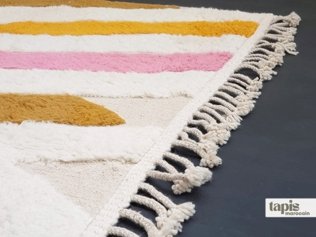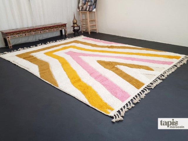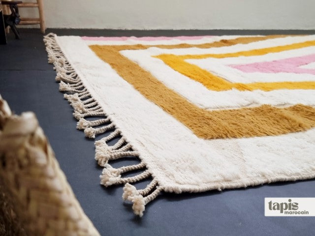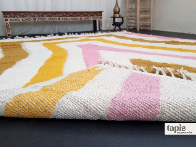 Le tapis berbère Beni Ouarain en laine douce marie authenticité et élégance moderne. Tissé à la main dans l’Atlas marocain, il séduit par ses motifs intemporels et son confort chaleureux. Véritable pièce d’artisanat, chaque tapis marocain est unique, fruit d’un savoir-faire ancestral. Avec sa texture raffinée et son style polyvalent, il apportera caractère et douceur à votre salon, chambre ou bureau.