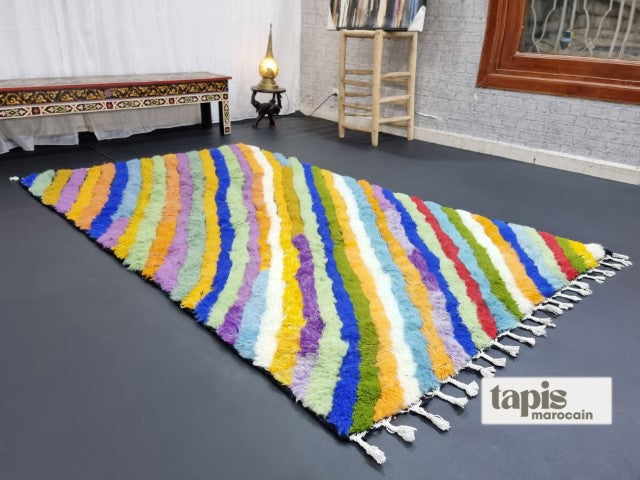 Le tapis berbère Beni Ouarain en laine douce marie authenticité et élégance moderne. Tissé à la main dans l’Atlas marocain, il séduit par ses motifs intemporels et son confort chaleureux. Véritable pièce d’artisanat, chaque tapis marocain est unique, fruit d’un savoir-faire ancestral. Avec sa texture raffinée et son style polyvalent, il apportera caractère et douceur à votre salon, chambre ou bureau.