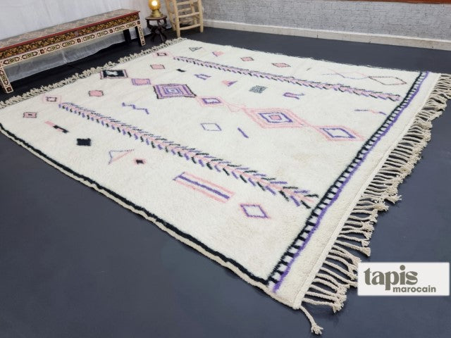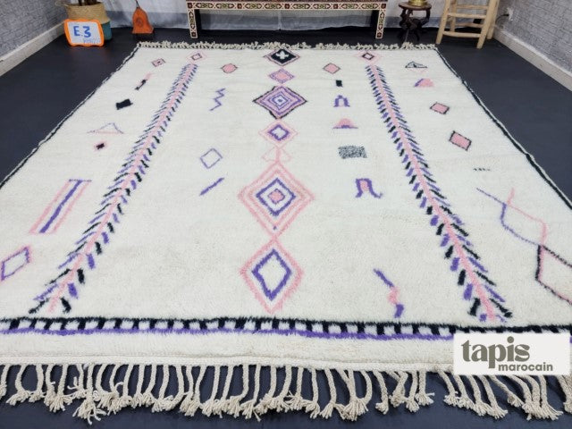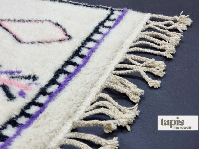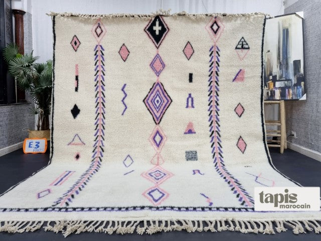 Ce tapis berbère Beni Ouarain en laine douce marie authenticité et élégance moderne. Tissé à la main dans l’Atlas marocain, il séduit par ses motifs intemporels et son confort chaleureux. Véritable pièce d’artisanat, chaque tapis marocain est unique, fruit d’un savoir-faire ancestral. Avec sa texture raffinée et son style polyvalent, il apportera caractère et douceur à votre salon, chambre ou bureau.