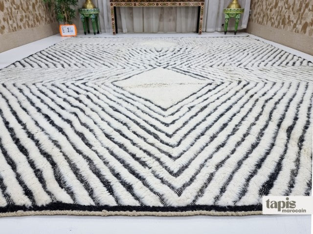 Le tapis berbère Beni Ouarain en laine douce marie authenticité et élégance moderne. Tissé à la main dans l’Atlas marocain, il séduit par ses motifs intemporels et son confort chaleureux. Véritable pièce d’artisanat, chaque tapis marocain est unique, fruit d’un savoir-faire ancestral. Avec sa texture raffinée et son style polyvalent, il apportera caractère et douceur à votre salon, chambre ou bureau.