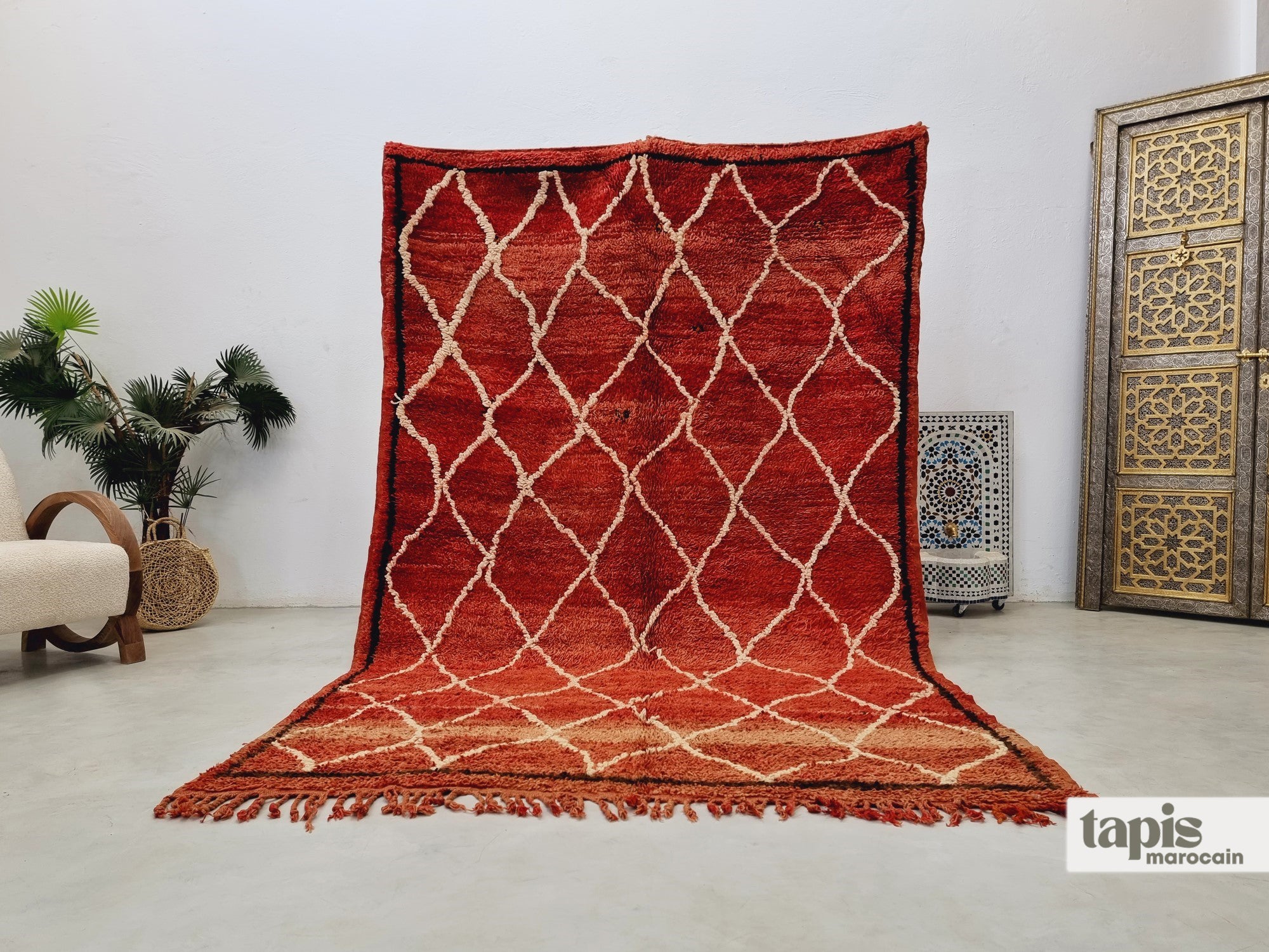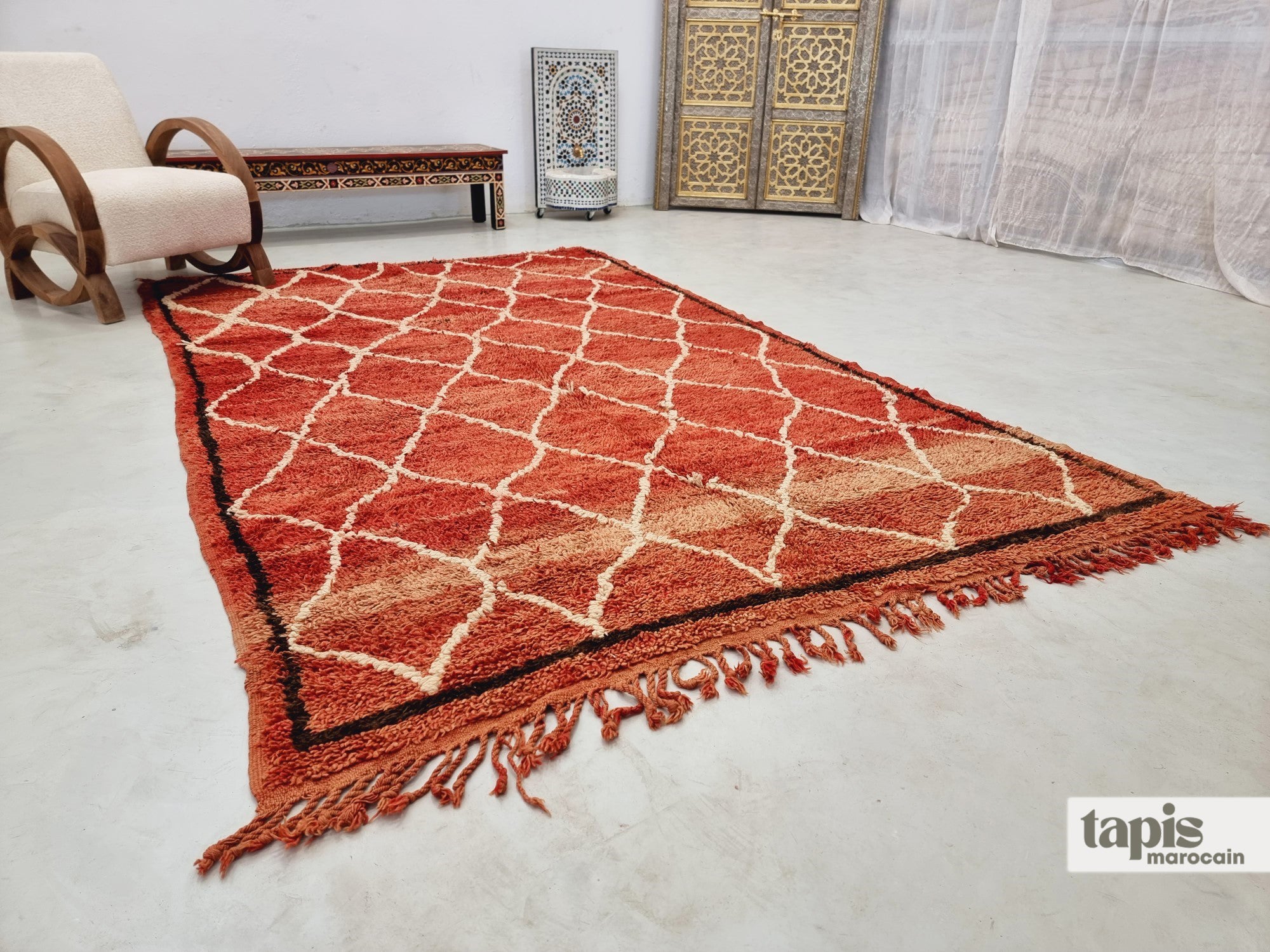 Des pistes escarpées du Moyen Atlas aux ateliers de nos tisserandes, chaque tapis Beni M’Guild est une trouvaille. Il a traversé montagnes, soleil et temps pour arriver jusqu’à vous. Tissés à la main par les femmes berbères du Moyen Atlas, ces tapis racontent des histoires de famille, de nature et de tradition. La laine dense, les couleurs profondes et les motifs discrets font de chaque pièce une œuvre vivante et chaleureuse.